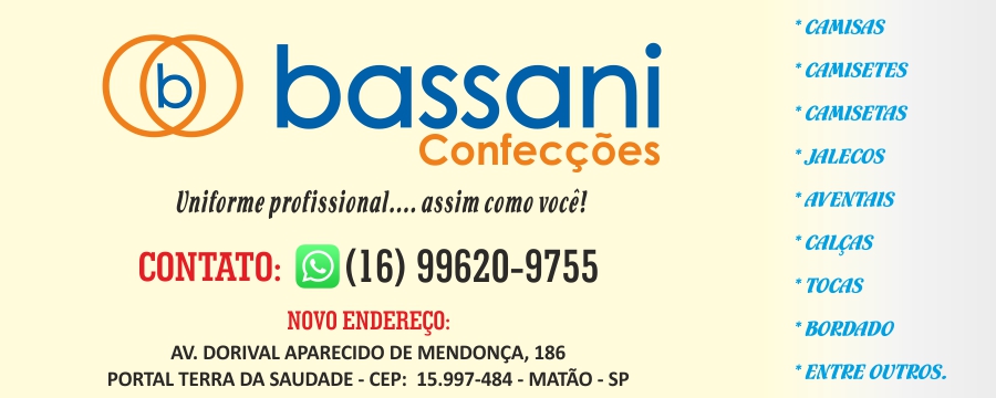 Bem vindo ao site da Bassani Confecções. Aqui você pode conhecer um pouco mais sobre nossos produtos e sobre nossa história.